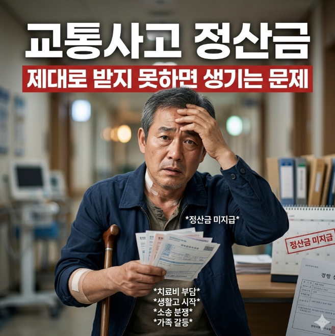 교통사고 이후 가장 흔한 오해 중 하나는 “치료비만 처리되면 괜찮다”는 생각입니다. 하지만 교통사고 정산금을 제대로 받지 못하면 어떻게 될까를 따져보면, 치료비만 받고 끝내는 방식이 오히려 더 큰 손해를 만들 수 있습니다.