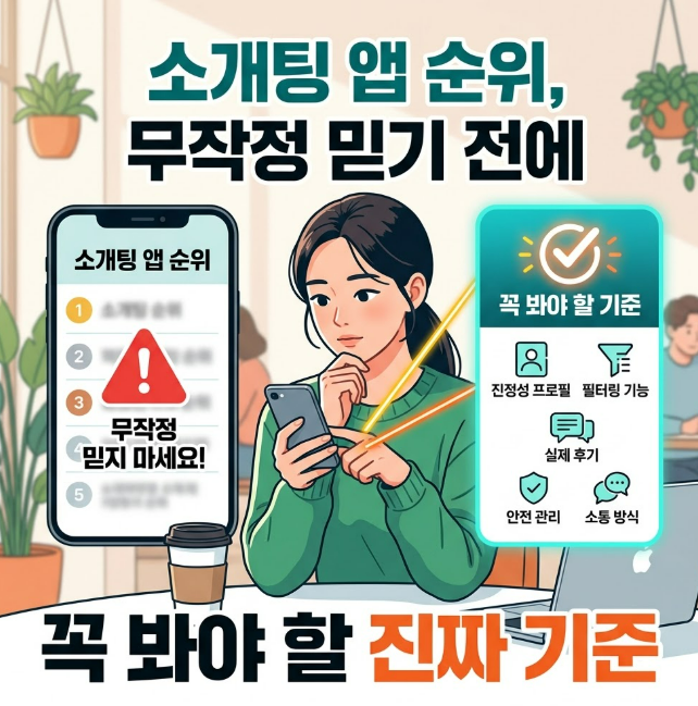 많은 사람들이 소개팅 앱 순위를 검색하면서 비슷한 고민을 합니다. “진짜 사람 많은 곳은 어디일까”, “괜히 가입했다가 시간만 낭비하는 건 아닐까”, “광고만 많은 곳은 아닐까”, “진지한 사람을 만날 수 있을까”, “후기가 좋은 곳은 믿어도 될까” 같은 고민입니다. 이런 걱정은 아주 자연스럽습니다. 오히려 이런 고민을 먼저 하는 사람이 더 신중하게 선택할 수 있습니다.
