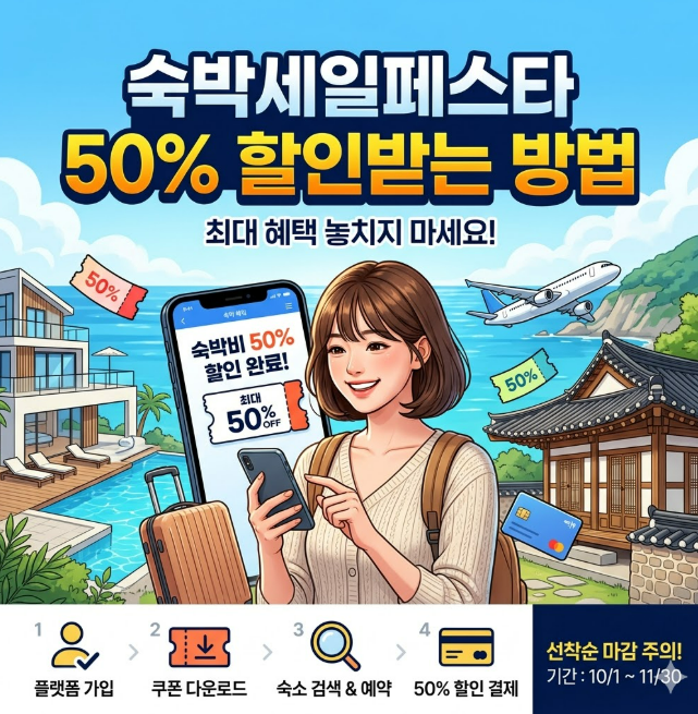 국내여행을 준비하는 분들이 요즘 많이 찾는 말 중 하나가 바로 숙박세일페스타로 50퍼센트 할인받는 방법입니다. 숙소 가격이 여행 예산에서 차지하는 비중이 큰 만큼, 단순히 쿠폰을 받는 것보다 어떻게 써야 가장 크게 체감 할인으로 이어지는지가 더 중요해졌습니다. 실제로 공식 안내를 보면 이번 행사는 비수도권 지역에서 사용 가능하고, 4월 8일부터 4월 30일까지 매일 오전 10시부터 선착순으로 쿠폰이 발급되며, 숙박 금액 구간에 따라 할인액이 달라집니다. 그래서 숙박세일페스타로 50퍼센트 할인받는 방법을 찾는다면, 먼저 “몇 퍼센트 할인 행사”가 아니라 “어떤 금액 구간에서 할인율이 최대가 되는지”를 이해해야 합니다.