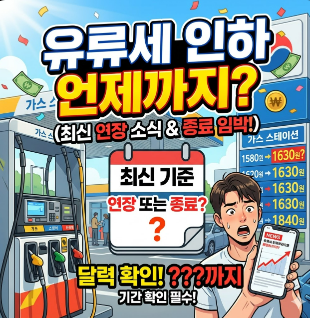유류세 인하 언제까지 연장될지는 아직 확정적으로 말하기 어렵습니다. 다만 정부는 그동안 국제유가, 물가 상황, 서민 부담 등을 고려해 여러 차례 연장해 왔습니다. 실제로 2026년 초에도 유류세 한시 인하가 추가 연장된 바 있습니다.