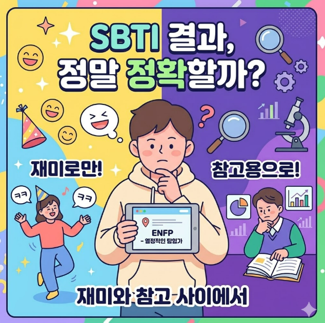 **SBTI 검사 결과는 정확할까?**라는 질문의 답은 “완전히 정확하다기보다 참고하기 좋다”에 가깝습니다. SBTI는 요즘 인기 있는 성격 테스트로, 내 성향을 가볍게 확인하고 나를 돌아보는 데 도움이 될 수 있습니다.